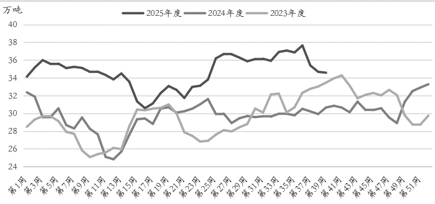 2025年以来,国内苯乙烯行业利润持续收窄,部分装置检修导致短期产能利用率有所下滑。在产能快速扩张的背景下,尽管近期苯乙烯周度开工率呈下降趋势,但周度产量仍高于近几年平均水平,对盘面价格形成一定压制,限制了其反弹空间。据隆众资讯统计,截至9月25日当周,国内苯乙烯周度产量为34.58万吨,较前一周下降0.09万吨,环比减少0.26%,但较2024年同期上升12.82%,较2023年同期上升3.32%。