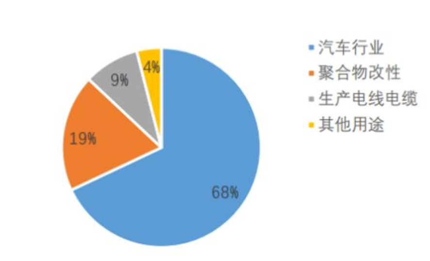 从终端应用来看,国内市场以汽车行业为主,消费占比达到68%,聚合物改性领域占比19%,电线电缆领域9%,其它领域4%左右。我国POE基本依赖进口,消费市场仍有待培育,后续可取代一部分橡胶及塑料。