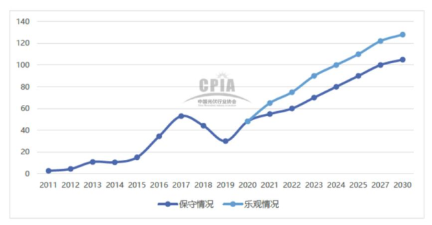 根据CPIA全球光伏装机容量的预测,并结合胶膜材料份额变化趋势,对EVA的未来的需求进行测算,均值情况下: