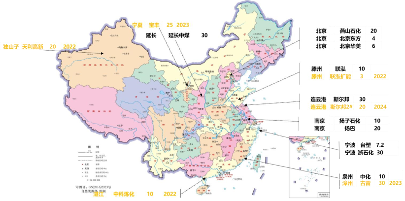 近年来随着大炼化及煤制烯烃发展,民营企业相继涌入EVA赛道,供给主体多元化,目前已经形成了国营、合资、民营三足鼎立局面。