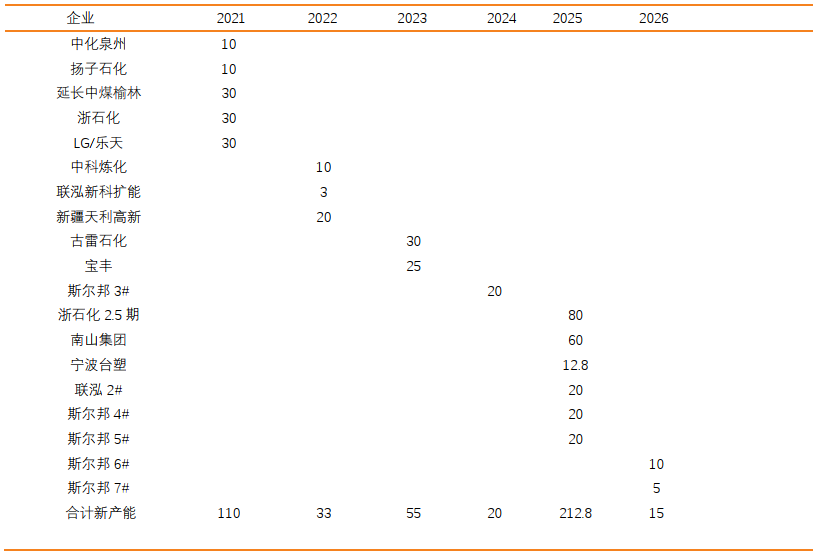 3).后续随着国内EVA投产加快,EVA自给率会逐渐上升,但仍保持较高的进口依赖度。
